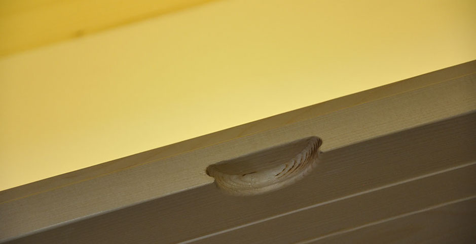 Proponiamo una vasta gamma di finiture, dall'oliato naturale al laccato, dal decapato al cerato, utilizzando, salvo casi particolari, prodotti all'acqua, prestando sempre particolare attenzione al pieno rispetto dell'ambiente.